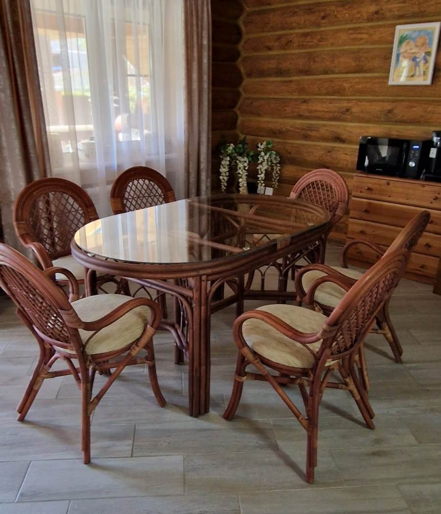 Стол обеденный овальный из натурального ротанга.