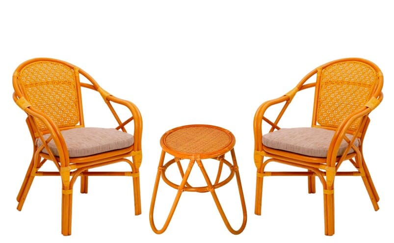 Мебель из натурального ротанга очень легкая и при этом прочная, а эта модель еще и максимально компактная, что позволяет ее использовать как на террасе, в доме, так и на небольшом балконе.