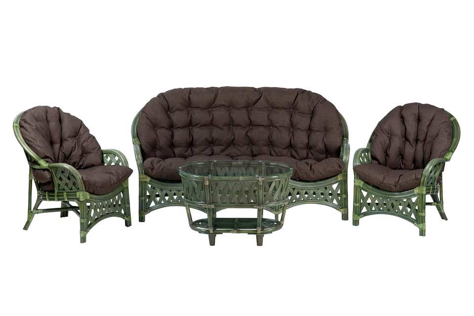 Комплект Черчилль с 3-местным диваном и овальным столом, подушки коричневые
